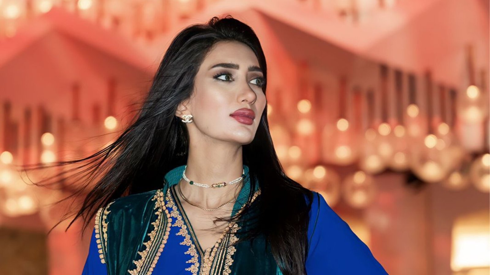 أما شروق لشواطئ فقد اعتمدت في إطلالتها على فستان من الستايل الإيطالي المميز ، من تصميم جاد آدم .