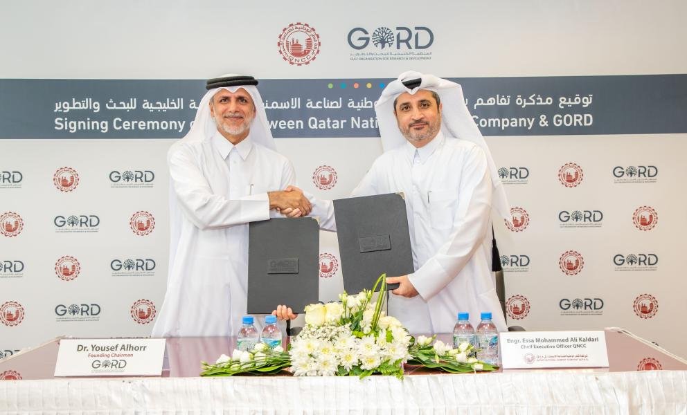 وقعت شركة قطر الوطنية لصناعة الأسمنت، والمنظمة الخليجية للبحث والتطوير (جورد)، اليوم الاثنين، مذكرة تفاهم للتعاون في مجالات البحث والتطوير لإنتاج مواد بناء خضراء أو منخفضة الانبعاثات الكربونية.