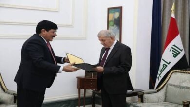 سلّم السفير السوري لدى بغداد صطام جدعان الدندح، للرئيس العراقي عبد اللطيف جمال رشيد رسالة تهنئة خطية من الرئيس بشار…